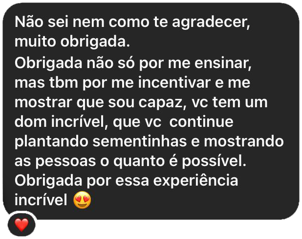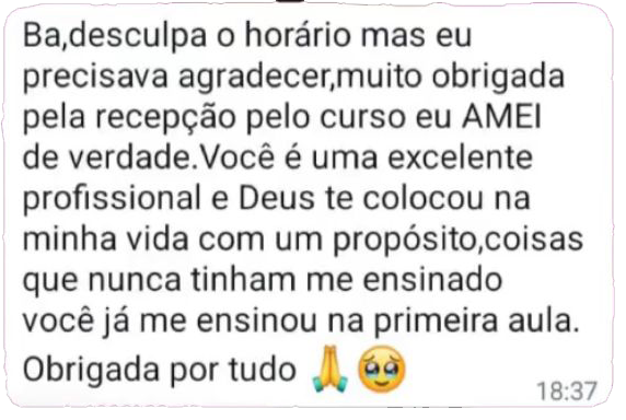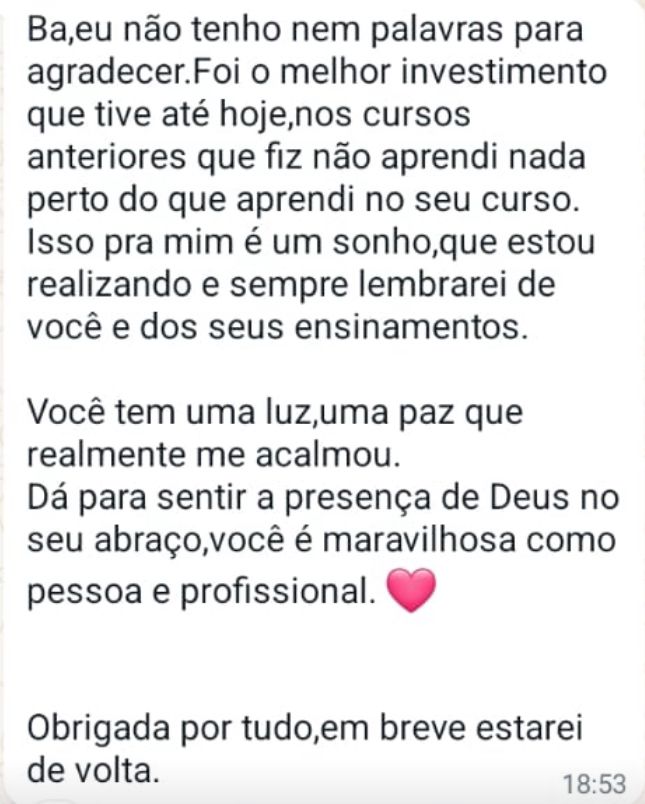 Faça como minhas clientes e alunas, sinta a transformação que está dentro de você e juntas vamos alcançar nossos objetivos.
