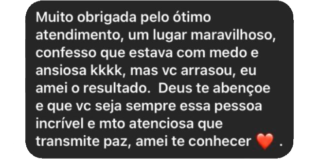 Proporciono uma experiência única, com amor e qualidade em todos procedimentos oferecidos.