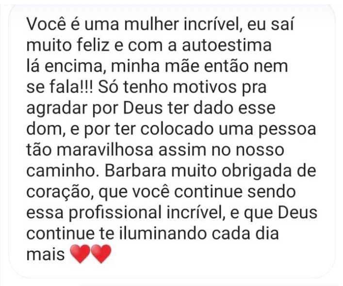Há 08 anos atrás atendia na sala da minha casa, onde conquistei clientes e autoridade na minha área. Hoje graças a Deus e grande dedicação posso oferecer um serviço de qualidade em minha estrutura, em diversos procedimentos que me especializei e ensinar outras mulheres com meu CURSO VIP a profissão que sou apaixonada.